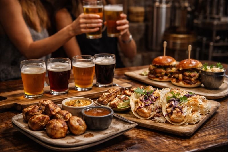 - Chef-curated food pairings (light bites that complement the flavors of the beers)