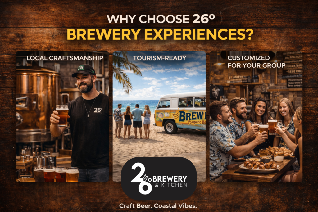 At 26° Brewery & Kitchen, we don’t just offer a drink — we offer an experience. Whether you’re here for a corporate outing, a date night, or just exploring South Florida’s craft beer scene, we ensure that every visit is memorable.